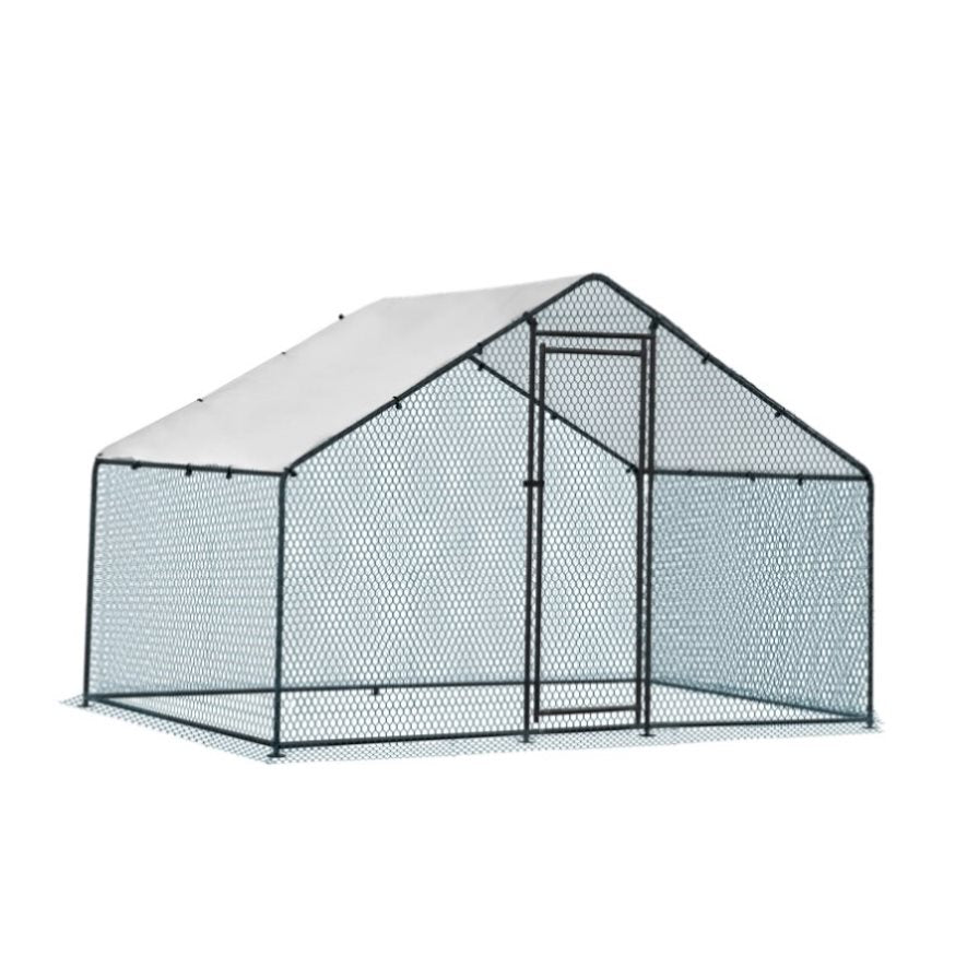 4. Durable Hexagonal Wire Mesh: Features a plastic-coated hexagonal wire mesh made from galvanized wire, providing a robust barrier that prevents escapes and protects against predators.