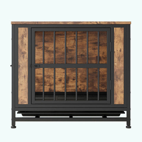 Dog Crate Furniture, Wooden Dog Crate Table, 27.48" Dog Kennel with 2 Slidings and Thick Iron W840P203065