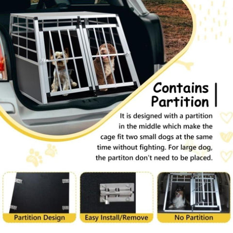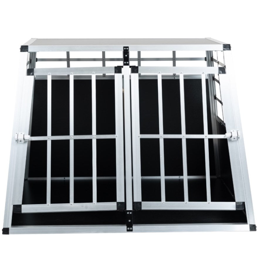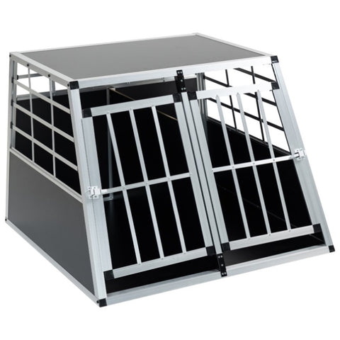 Double Doors Pet Car Transport Cage Aluminium Puppy Travel Crate Box Trapezoidal Kennel Dog Cat W2505P228355