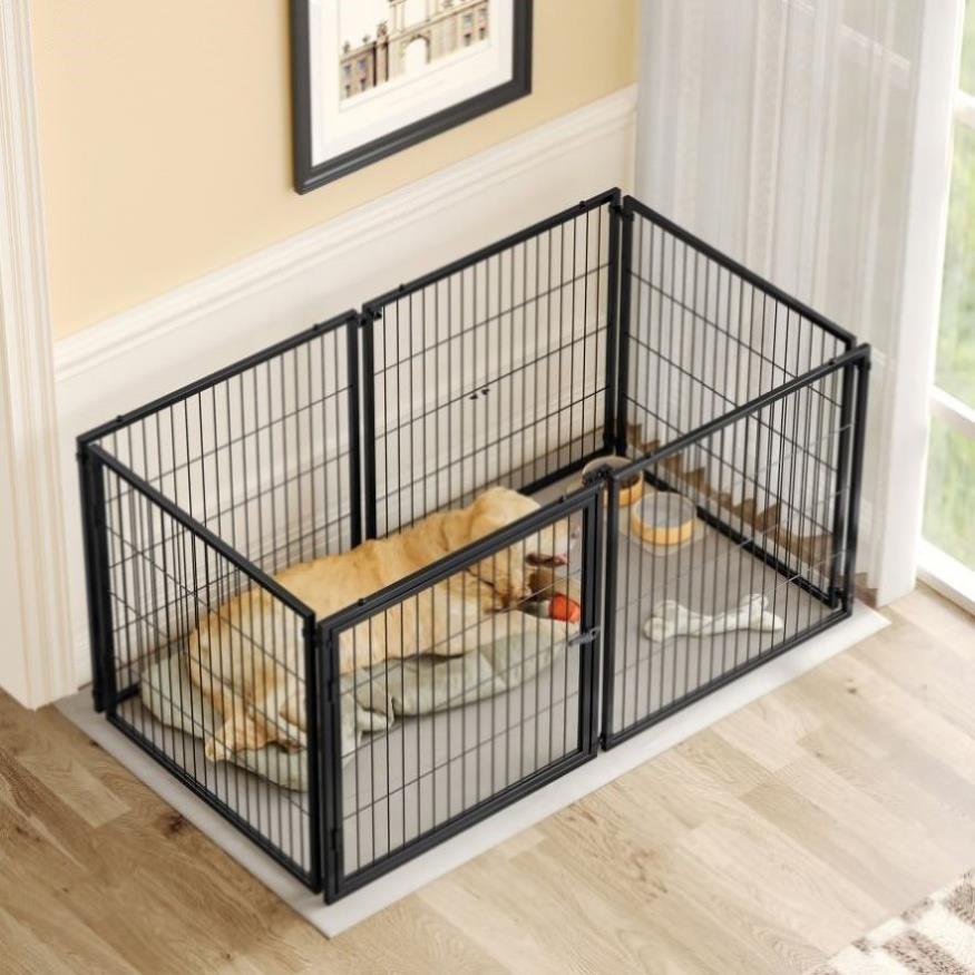 • Assembly is a piece of cake: you only need to assemble independent fences through connectors, and one person can complete the assembly in 20 minutes. And you can assemble it into any size according to the number of iron frames. The door part does not require additional assembly and can be used directly to build a new home for your pet!