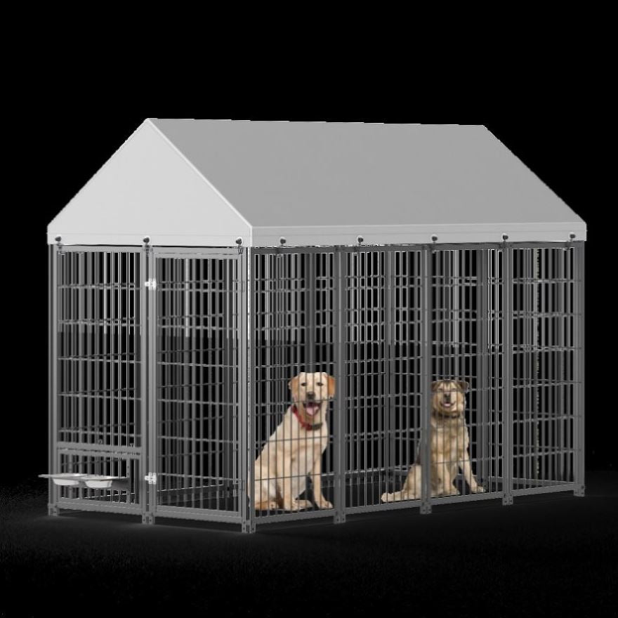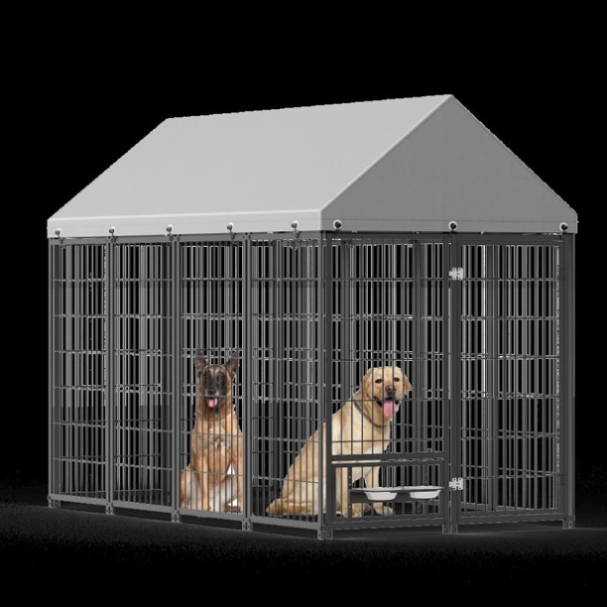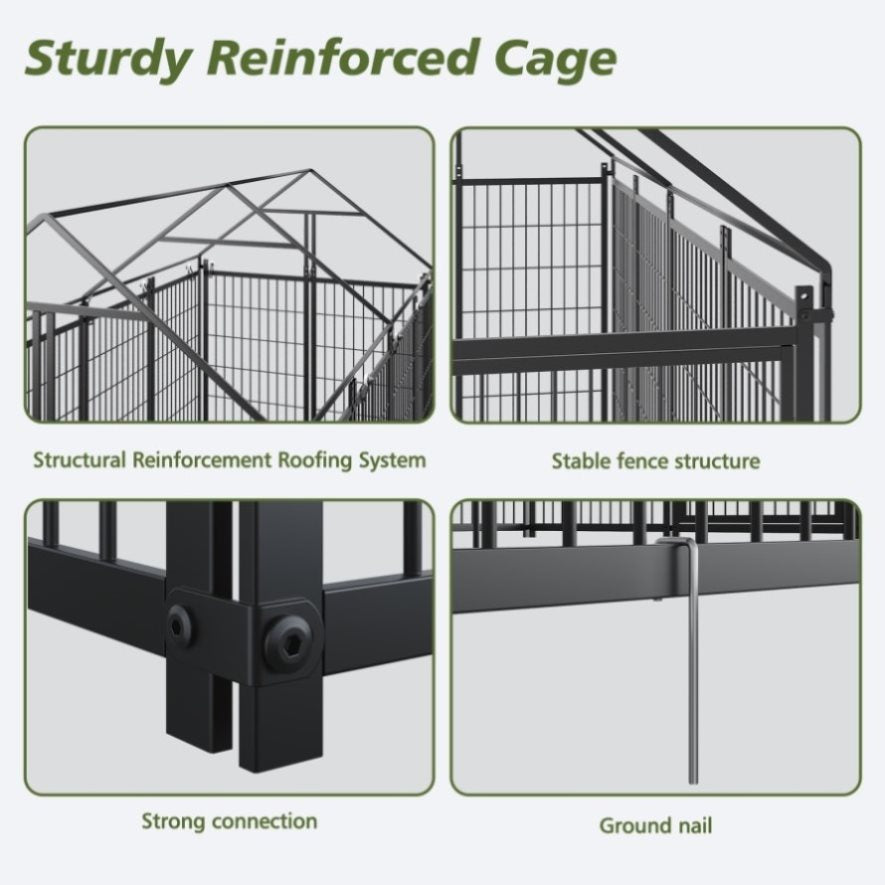 Reinforced structure: This outdoor dog cage is made of high-quality metal iron, with multiple load-bearing columns added for greater stability. The double door lock design prevents your pet from rushing out of the cage.