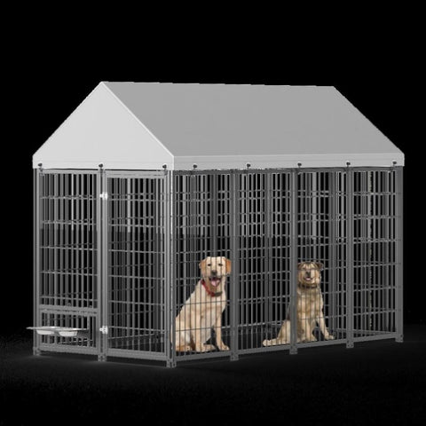 Large Dog Kennel Outdoor Pet Pens Dogs Run Enclosure Animal Hutch Metal Coop Fence with Roof Cover. W1820P296149