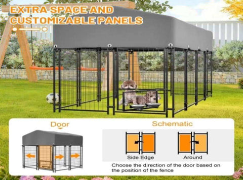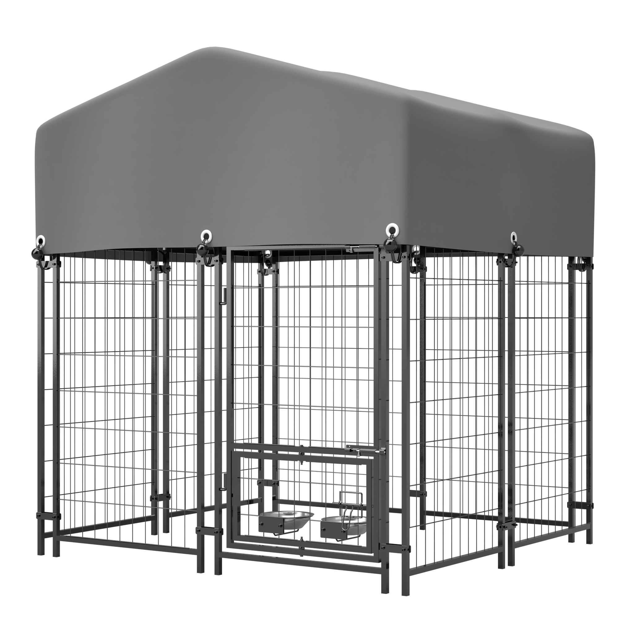 Outdoor Dog Kennel 4.23'x3.83'x4.83' with Roof, Heavy Duty Welded Wire Crate, All-Weather Protection 43943616