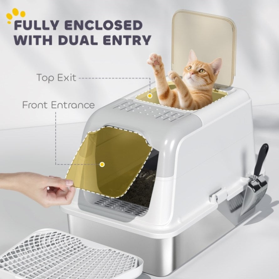 Stainless Steel Enclosed Litter Box for Cats 21843372