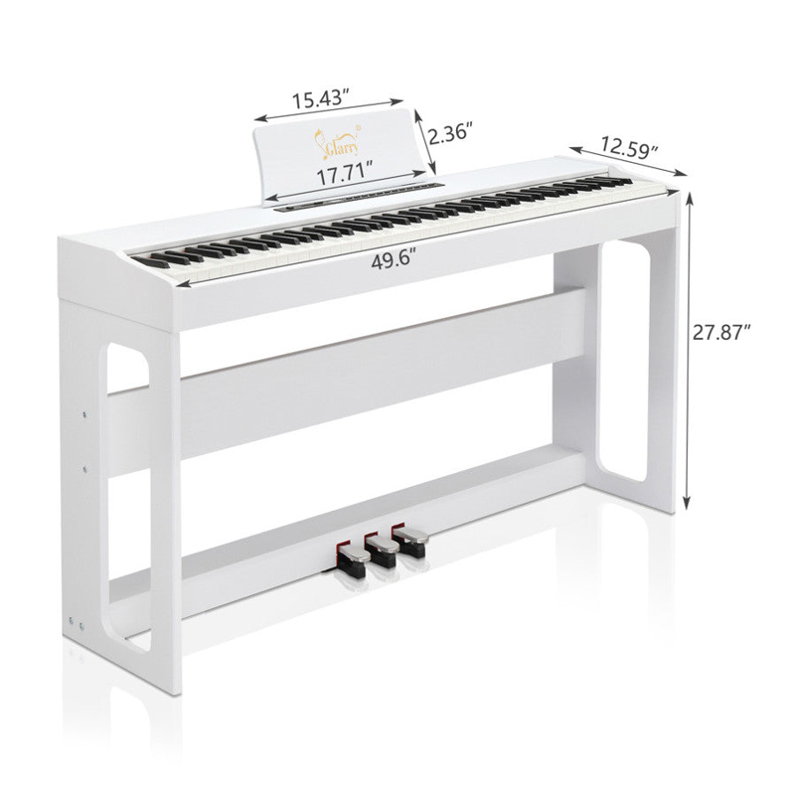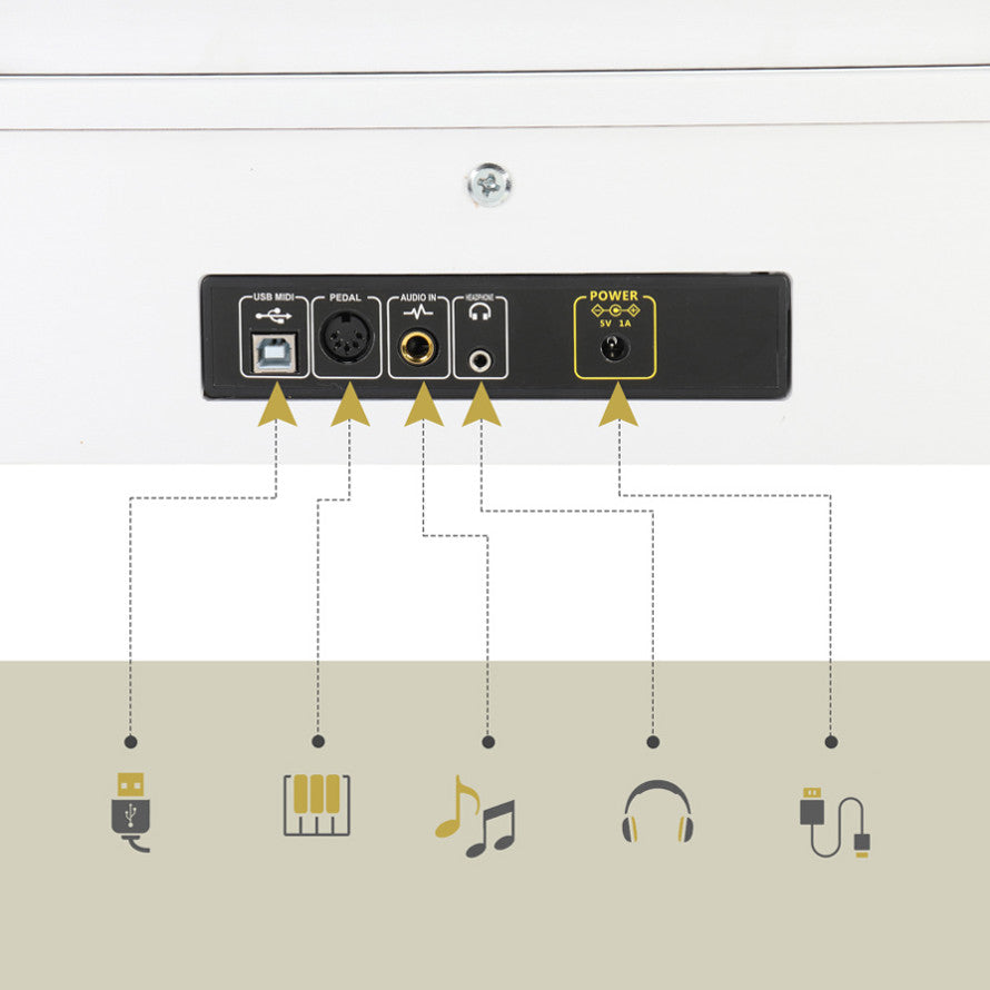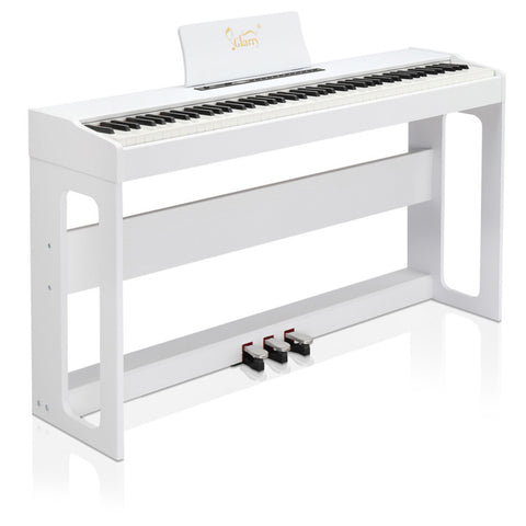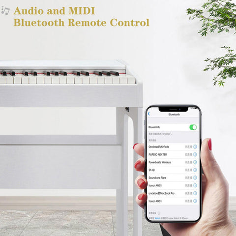Glarry 88 Keys Digital Piano Full Weighted Keyboards adopts the High Quality DREAM sound source, digital sampling, has 3 Pedal System (Soft/Sustain/Sostenuto Pedal), which can bring you the most striking sound effects. At the same time we have functions: Metronome, Touch/transpose control, Split/Touch Control, Volume Control, USB, Midi input/output, Record/Play, Audio input/output. Through the connection of Midi input and APP, you can realize the follow-up function, easy for beginners to learn. Our 88 key piano with two Dual Bluetooth, Audio Bluetooth and MIDI Bluetooth. Connect a COMPUTER or tablet with a USB cable for multimedia interaction. After the piano is turned on, Bluetooth will be automatically turned on. The mobile phone can search the MIDI Bluetooth signal of this piano. After the connection, the playing software on the mobile phone can realize the wireless connection with the piano.