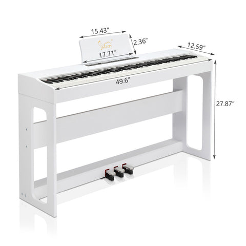 Piano Dimensions: 49.4 in x 12.79 in x 27.95 in