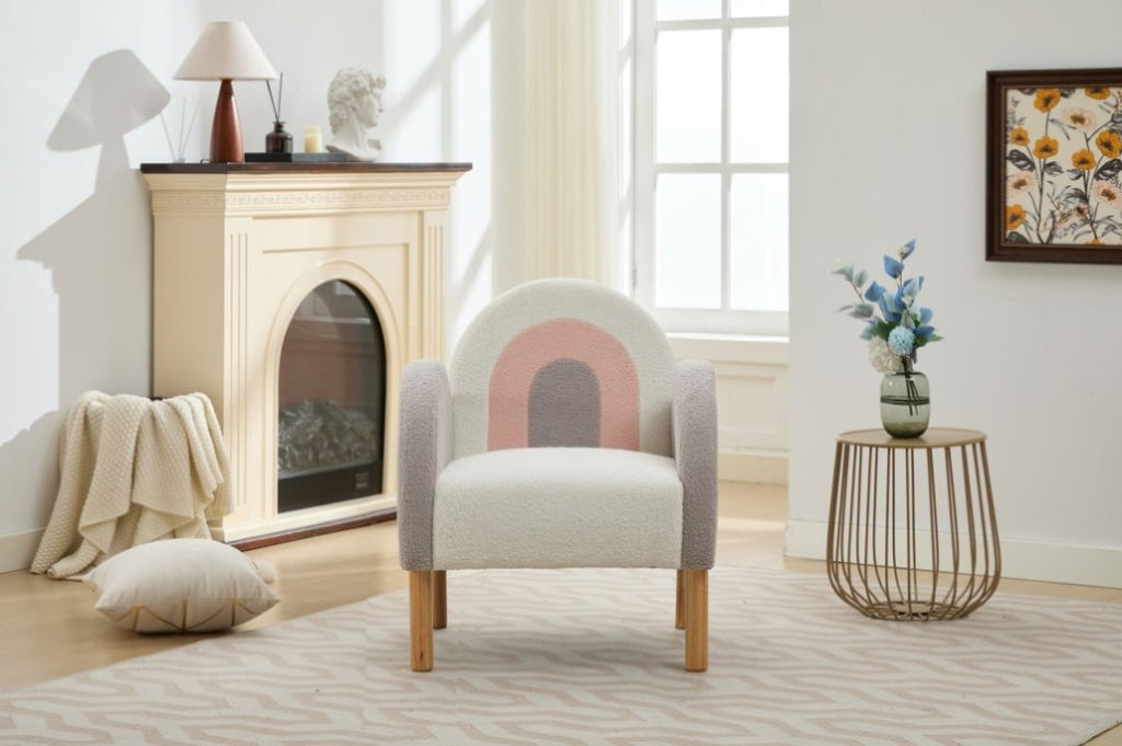 Chair Sofa, Toddler Fabric with Solid Wooden Frame,Rainbow Design 71798341