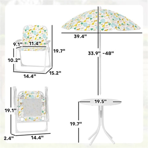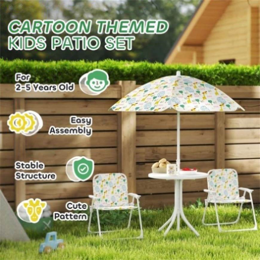 - - Four-piece set, includes chairs, table and umbrella