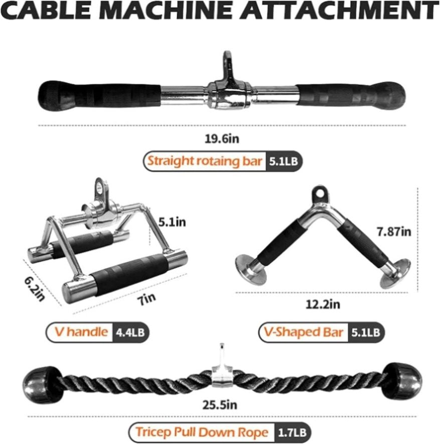 7.5”X7.5”x5.5” (LxWxH) give you a perfect and comfortable fit to your palms when exercising, and 0.53 inch hole can fit nicely for all cable systems. Constructed of high quality solid steel with high, polished chrome finish, Triceps V Shaped Press Down Bar is more elegant and durable without corrosion and rust. Rubber handles with textured surface for non-slip increase the secured and firm grip to your hands during workouts; the V-shape provides a balanced force to both arms when you attach it to any gym machine to perform.