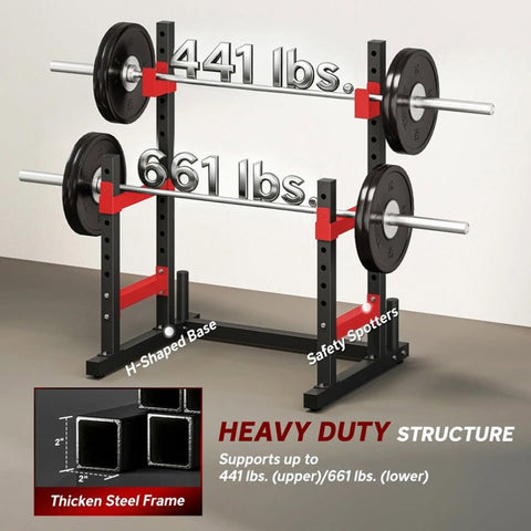 - - Dual barbell holders allow seamless switching between exercises for efficient workouts