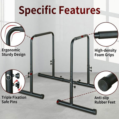 550 LBS Loading Capacity:The dip bars are constructed from high-density steel to provide long-term stability and easily support users up to 550 lbs, keeping you in better shape for longer workouts.