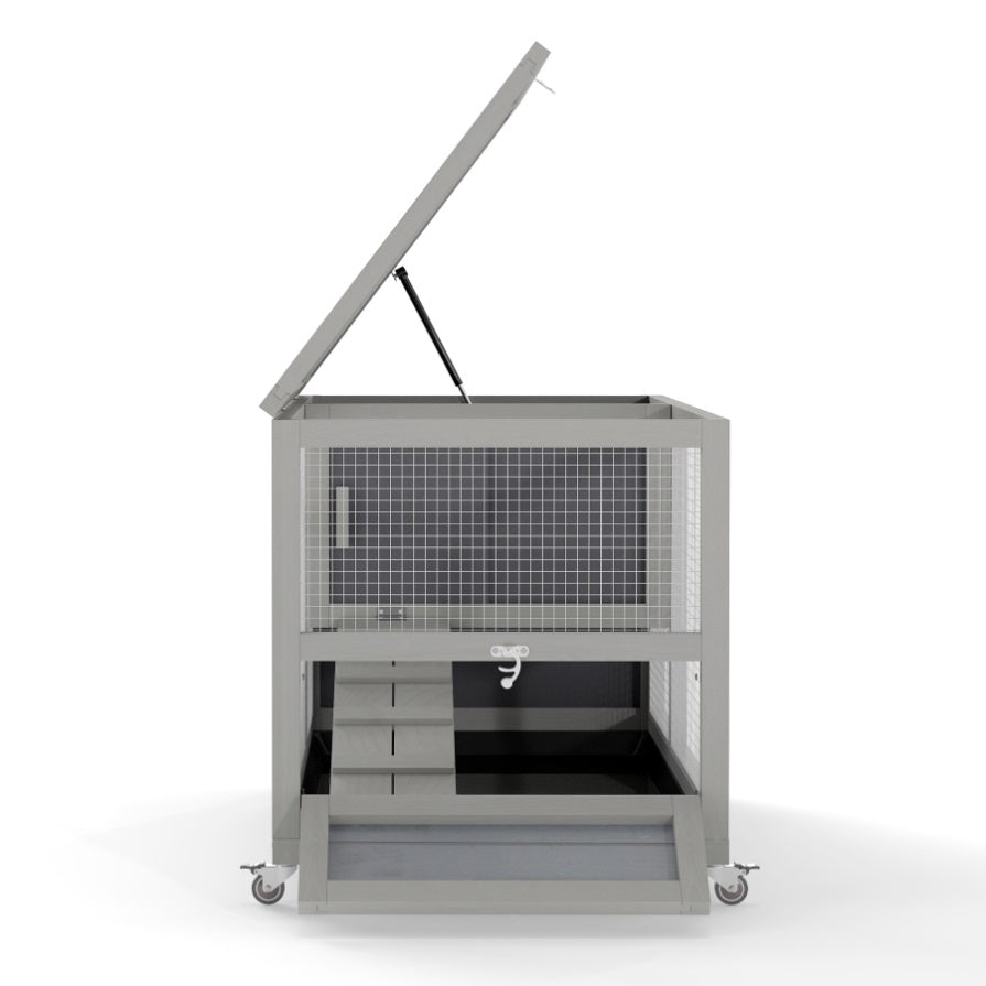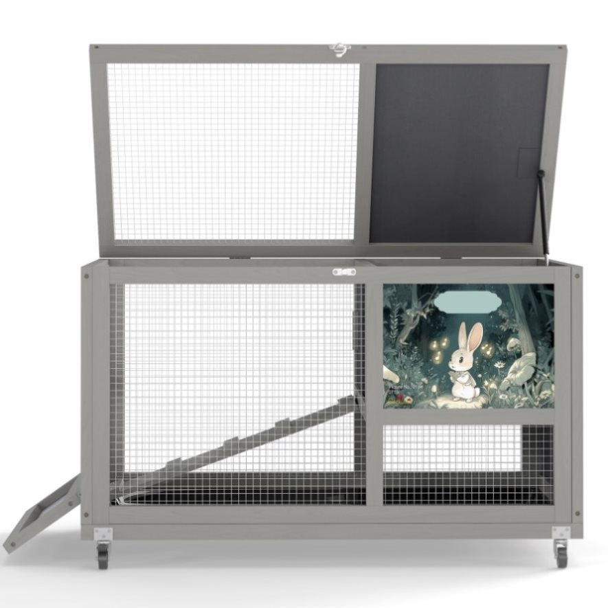 2-Level Pet Shelter: Designed with a spacious run, a raised hideout, and a nonslip ramp, this rabbit hutch lets your bunnies climb up to enjoy undisturbed rest and walk down to roam freely and breathe fresh air.