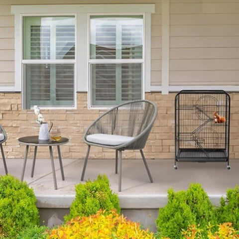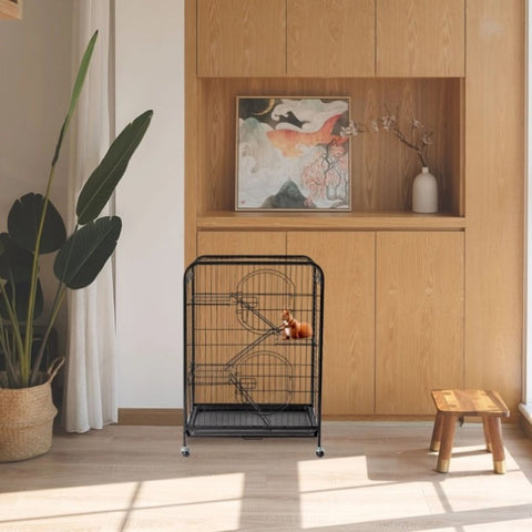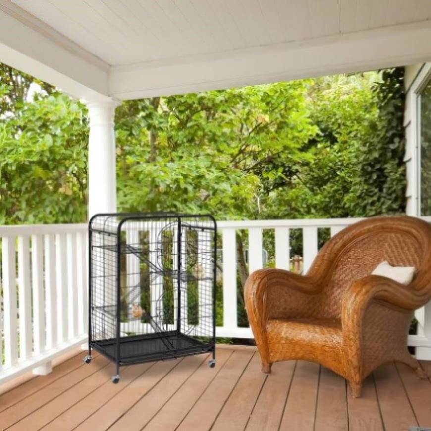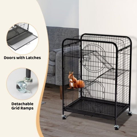 Give your small pets a fun and secure home with this 37" Metal Ferret Chinchilla Cage. Designed for a variety of small animals like ferrets, rabbits, guinea pigs, squirrels and kitten, this spacious playpen provides multiple levels for climbing, jumping, and lounging, ensuring your pets stay active and entertained. Made from durable steel wire with a rust-resistant black powder coating, this sturdy cage is both safe and long-lasting. Its 360° swivel wheels allow easy mobility around your home, while lockable wheels ensure stability when needed. Perfect for indoor use, this hutch combines functionality with comfort, making it a great choice for your furry friends.