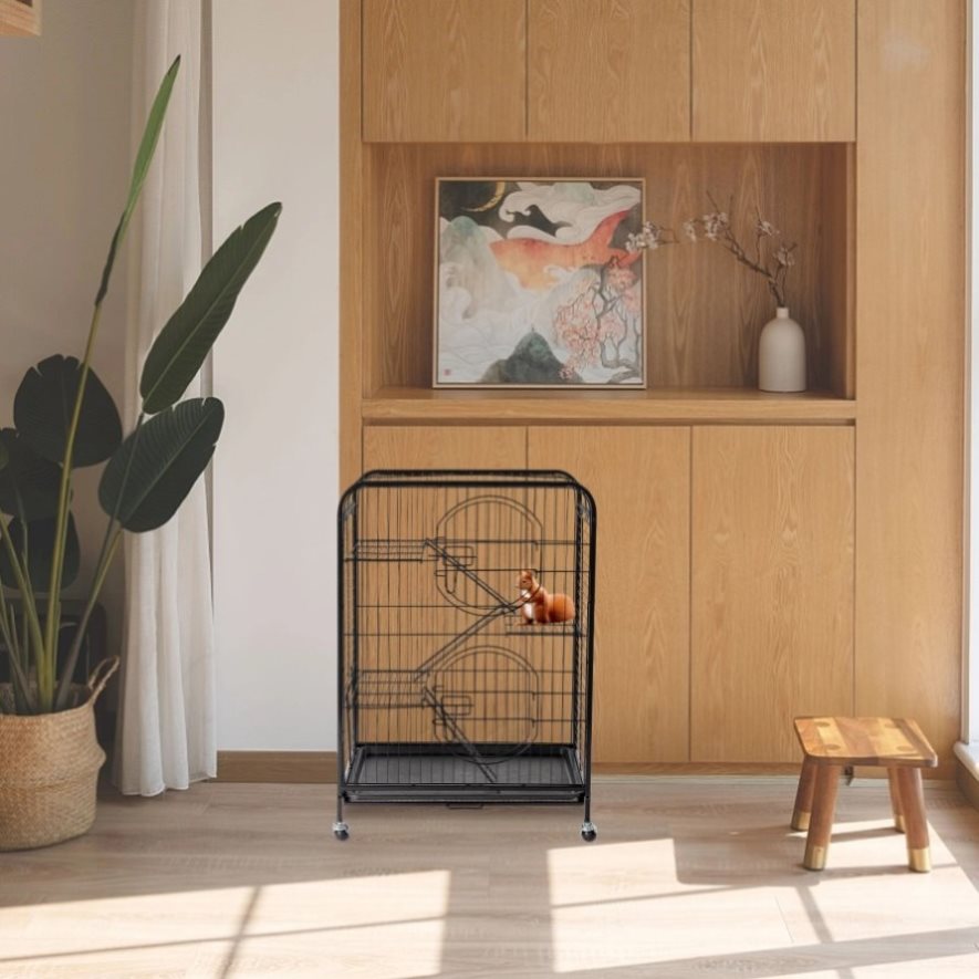 3. Durable and Pet-Safe Construction: Built from high-quality, rust-resistant steel with a black powder-coated finish, this cage is both sturdy and safe. The close wire spacing prevents pets from escaping or getting injured, while the robust frame ensures long-lasting durability. It's designed to withstand active pets, ensuring their safety while they play and rest.