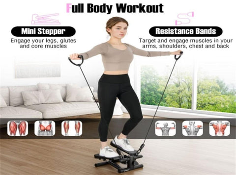 Mini Full Body Stepper - Resistance Bands Included, Adjustable Intensity, LCD Tracker 74668921