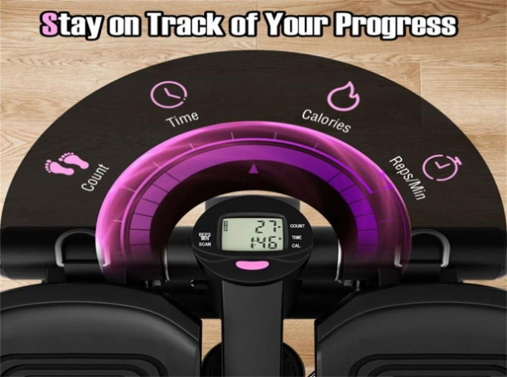 • Monitor Your Progress Effortlessly: You can stay motivated and track your workout metrics with a clear and easy-to-read display of this hydraulic fitness stepper that records your count, time, calories and reps/min.   With this information at your fingertips, you can set realistic goals, track your improvements and celebrate your achievements every step of the way.
