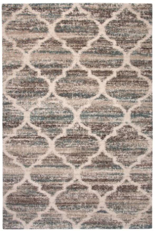 The Granada Trellis Blue, Brown, and Tan Area Rug is machine-woven using heatset frise yarns and features a durable jute backing. The neutral colors and plush thickness provide a trendy design that adds a global feel to any room in your home.