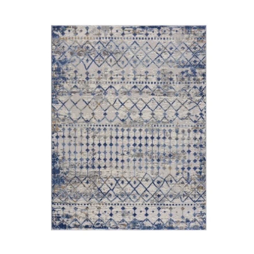 Add a fashionable style to your living space with the Madison Park Hannah Moroccan Area Rug. This machine woven, cut area rug features a blue and cream globally inspired print creating a rich and beautiful, look and feel. The medium soft pile provides simple comfort, as a transparent sprayed latex reverse helps to prevent rug from sliding making it well suited to high-traffic areas in your home. Easy to clean with a vacuum or spot cleaning, while also stain and fade resistant - this area rug brings a splash of color and a textural element to any home decor. This woven area rug is OEKO-TEX certified, meaning it does not contain any harmful substances or chemicals to ensure quality comfort and wellness. Available in multiple colors and sizes, this rug is perfect for any living room, family room, and or other room decor. A rug pad is highly recommended to keep the rug more secured in place; Rug pad sold separately.