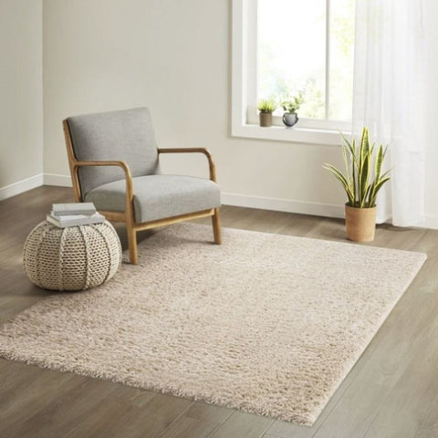 The Madison Park Camdyn Super Soft Polyester Shag Area Rug offers a chic modern addition to your living space. This solid cream shag area rug flaunts a super soft, high pile that makes it well suited to high-traffic areas in your home. A transparent sprayed latex reverse helps prevent the area rug from sliding, but a rug pad is still highly recommended to keep the rug in place. Easy to clean using a vacuum without a brush or by spot cleaning, this super soft shag area rug brings a rich textural touch to complement your home decor.