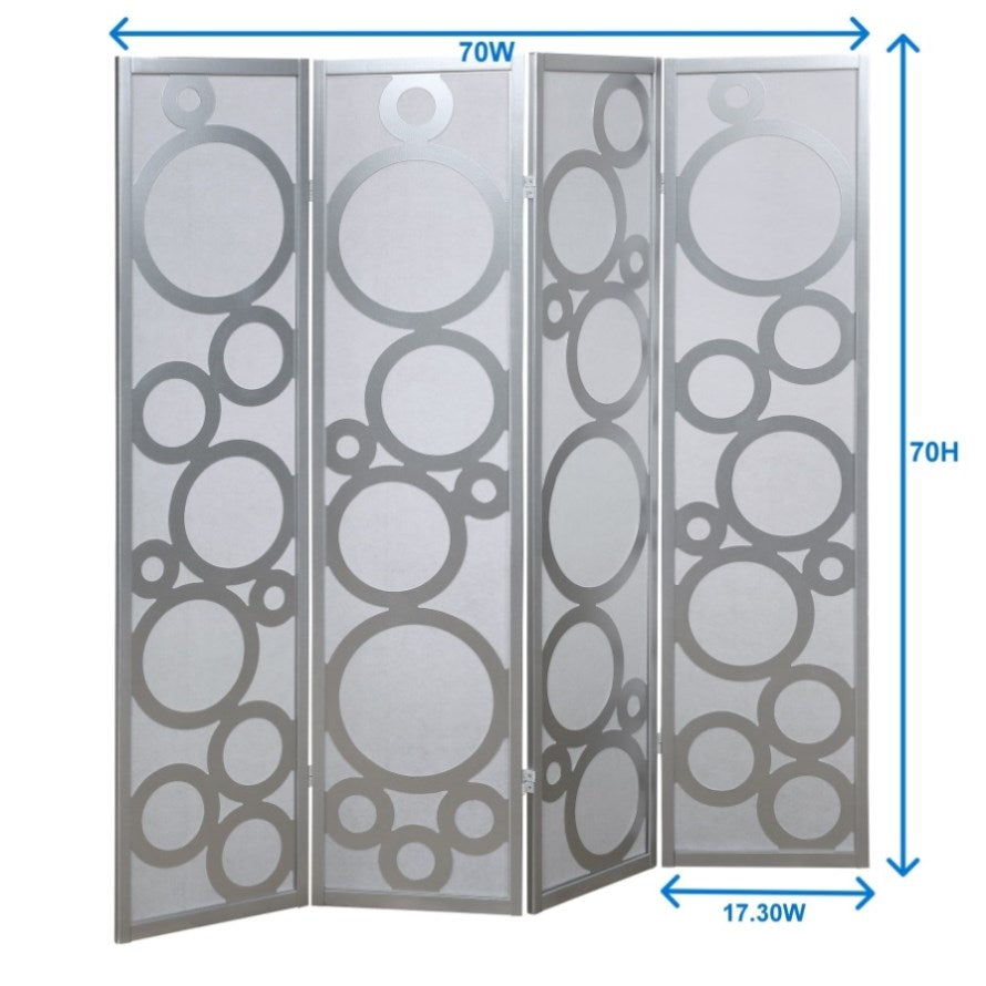 Arvada 4-Panel Wood Room Divider with Circle Pattern, Silver T2574P165180