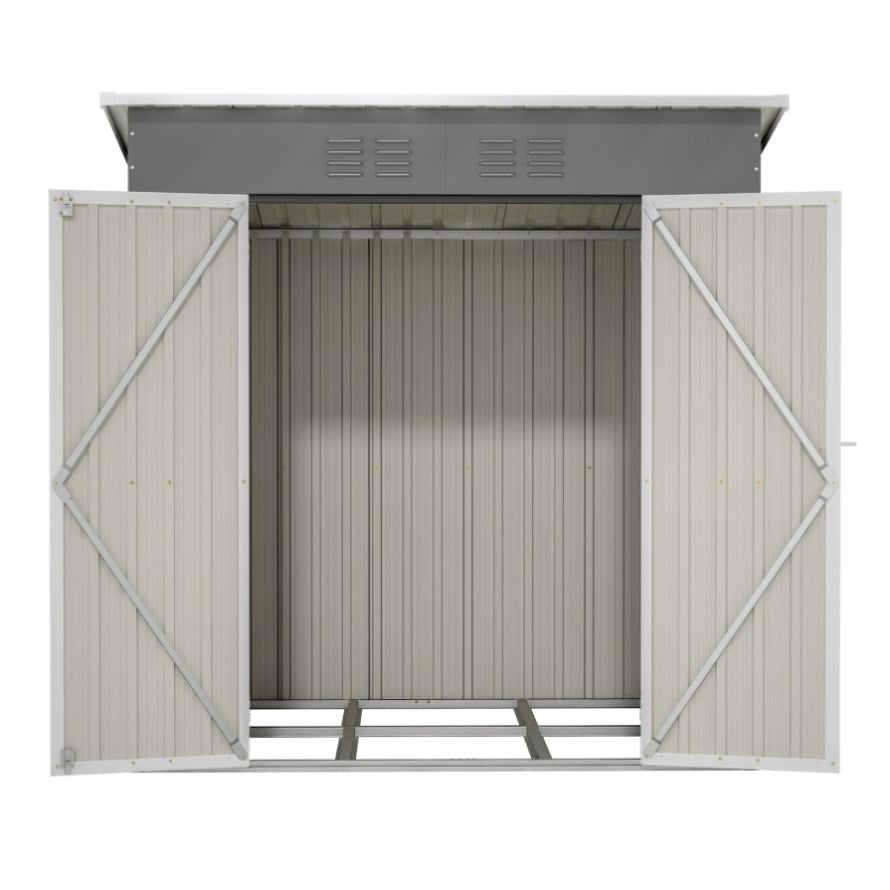 [Multifunctional use] 6'x4' outdoor Metal storage cabinet can be used not only as a tool shed, but also as a pet house, providing a safer and warmer room for your pet; it can also be used as a storage room for storing boxes, and can also be used as a garbage collection room to keep the backyard tidy. Which is a great shed house for backyard!