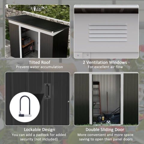 - - Steel panel walls and roof that are water-resistant and rainproof