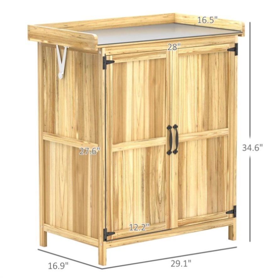 - - Serves as both garden storage cabinet and workbench