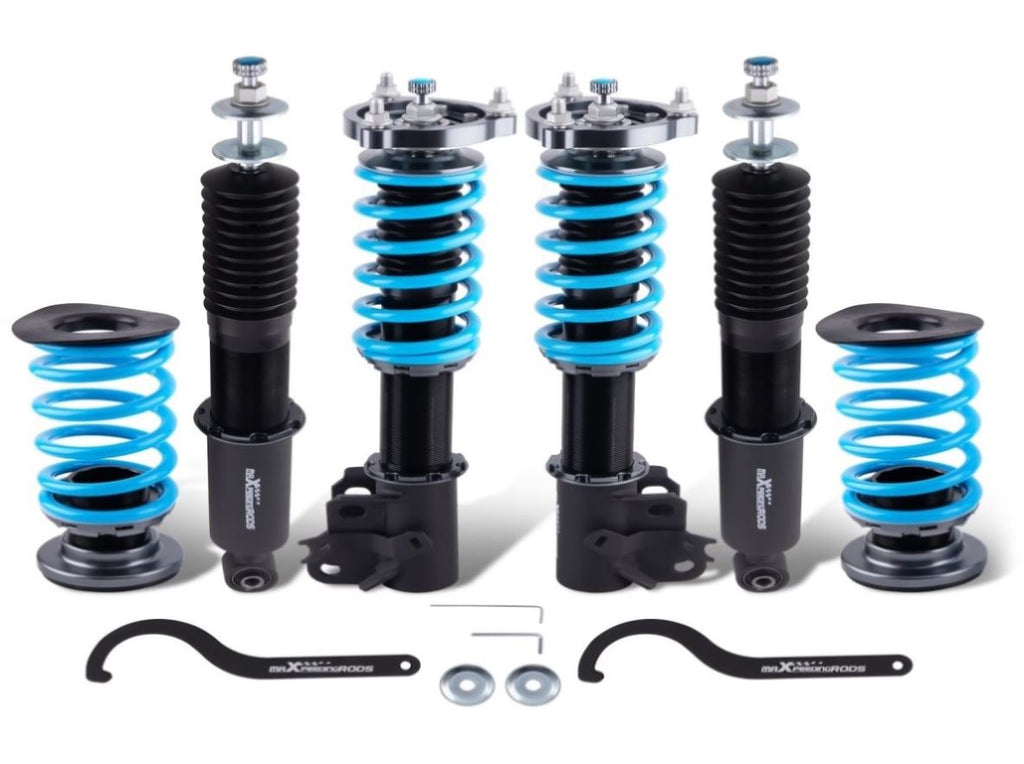 3. 24 levels adjustable damper -- This allows you the ability to perfectly dial in your coil-overs system. For nice comfortable driving, set damping to full soft. For more spirited driving, set it to 16 clicks. For occasional track days, set it to full stiff.