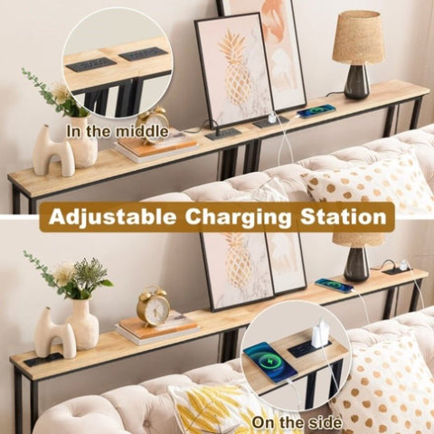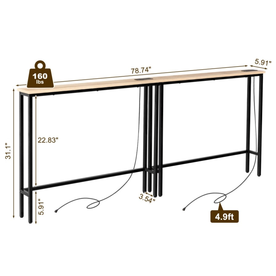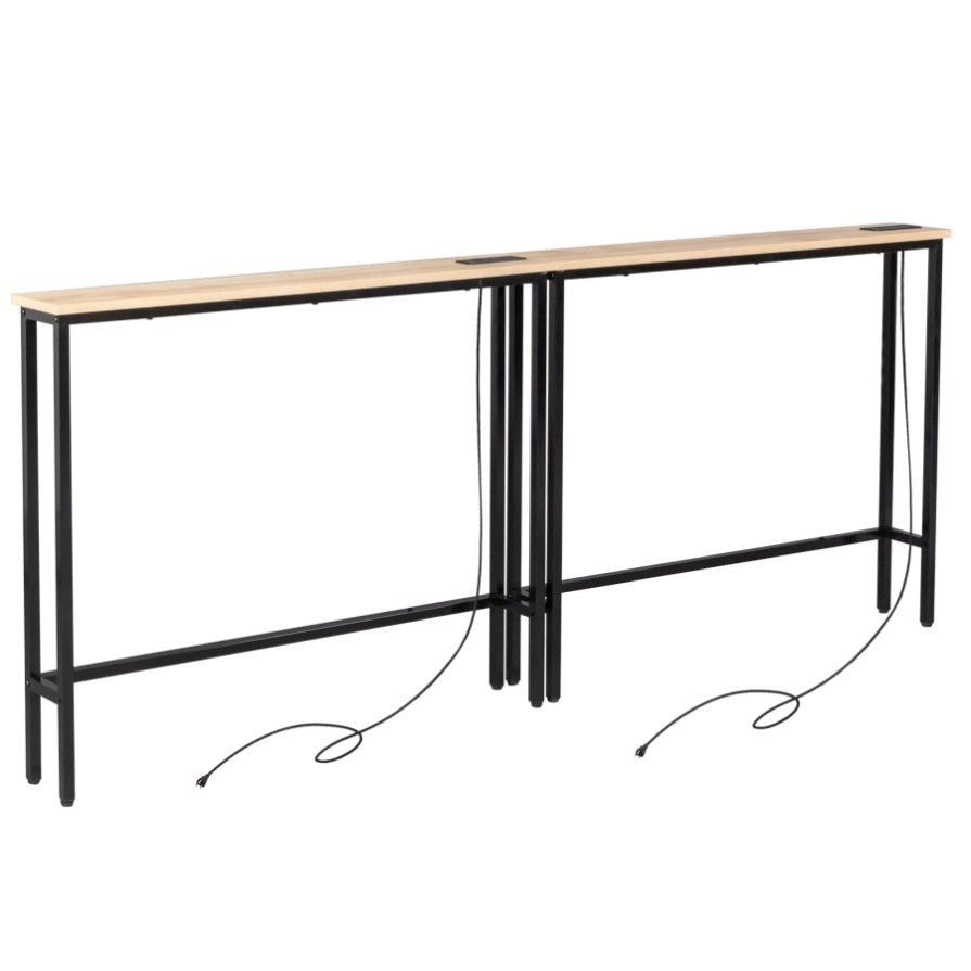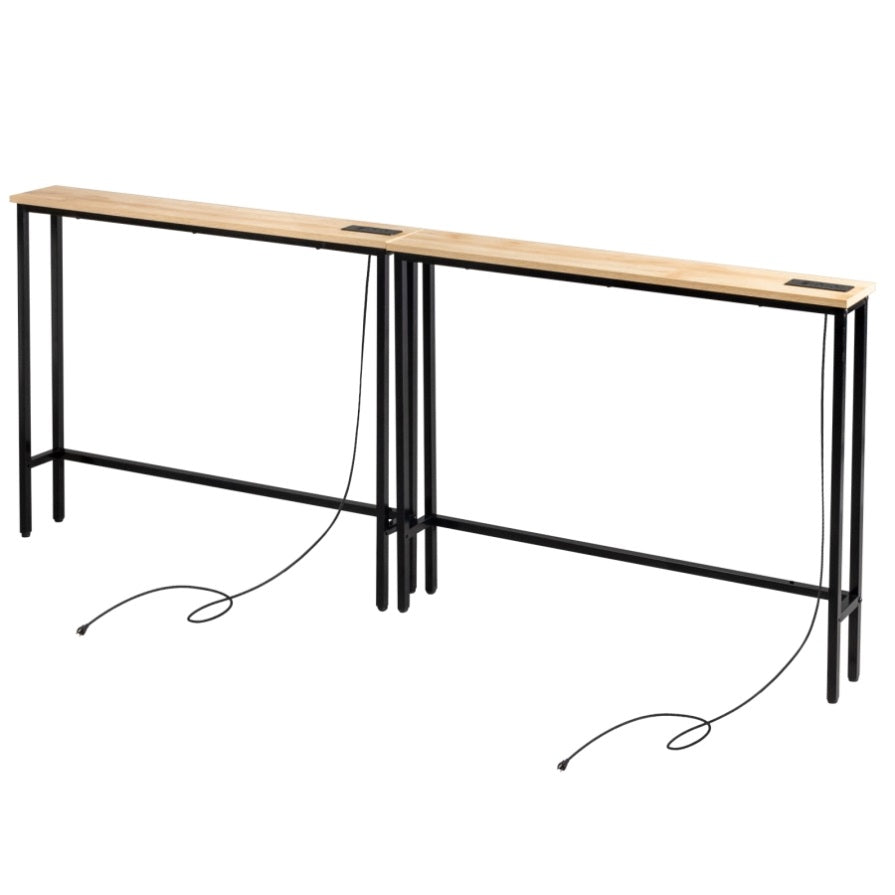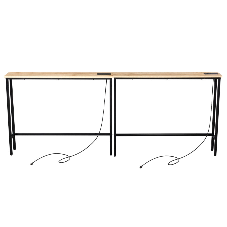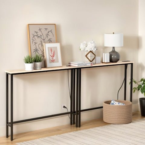 Maximize your space and functionality with this 2-pack of 39.4" Narrow Console Sofa Tables. Designed with a sleek modern design and durable metal frame, each table fits perfectly in tight spaces behind sofas or along walls, especially where wall vents are present. These tables feature built-in power outlets and USB ports, allowing you to easily charge laptops, phones, and more. With their minimalist design and practical features, they are a stylish solution for apartments, dorms, or living rooms.