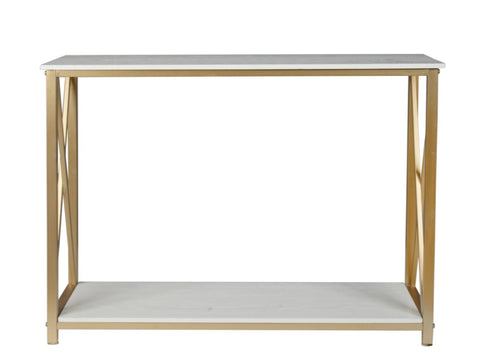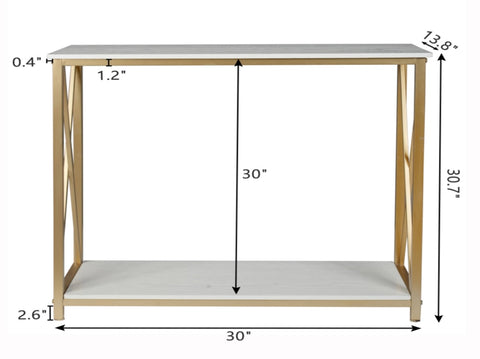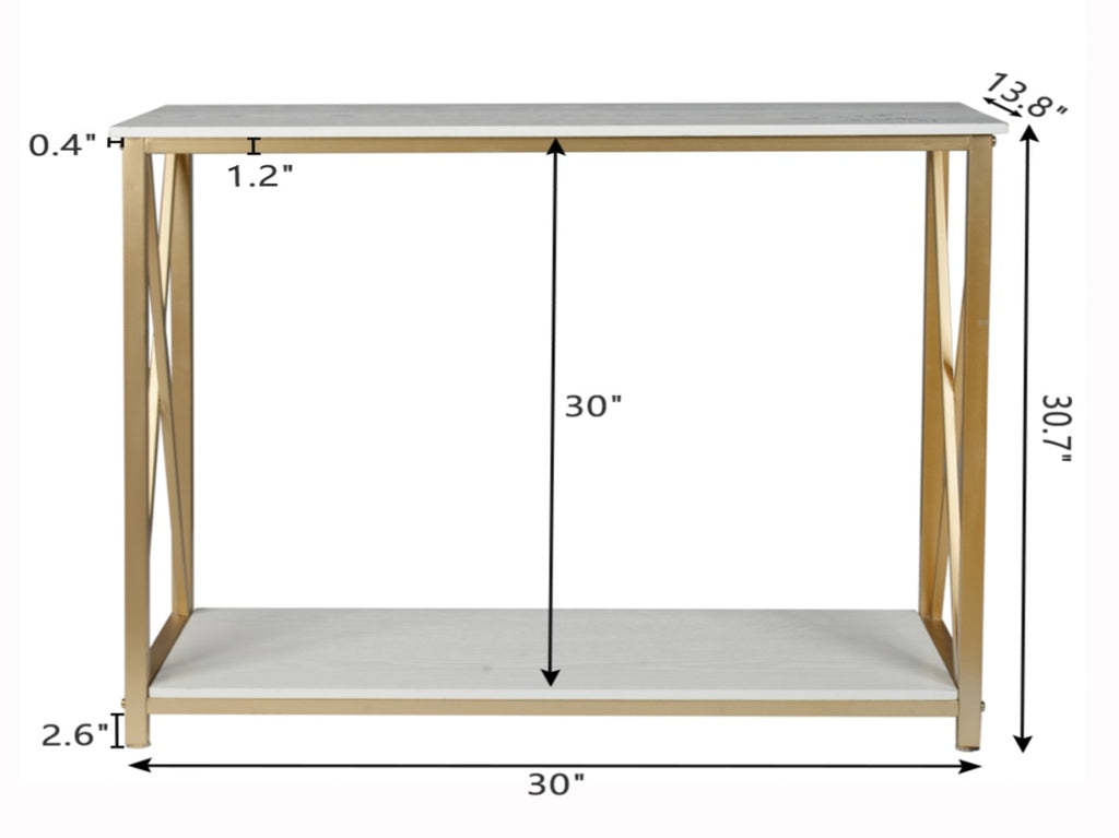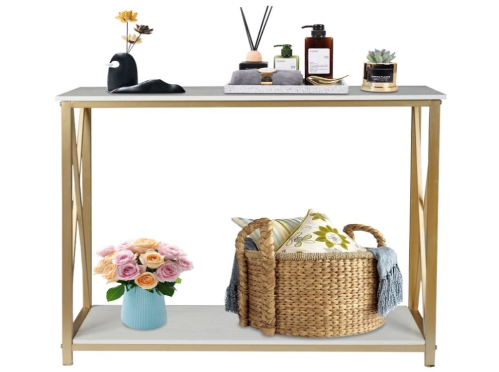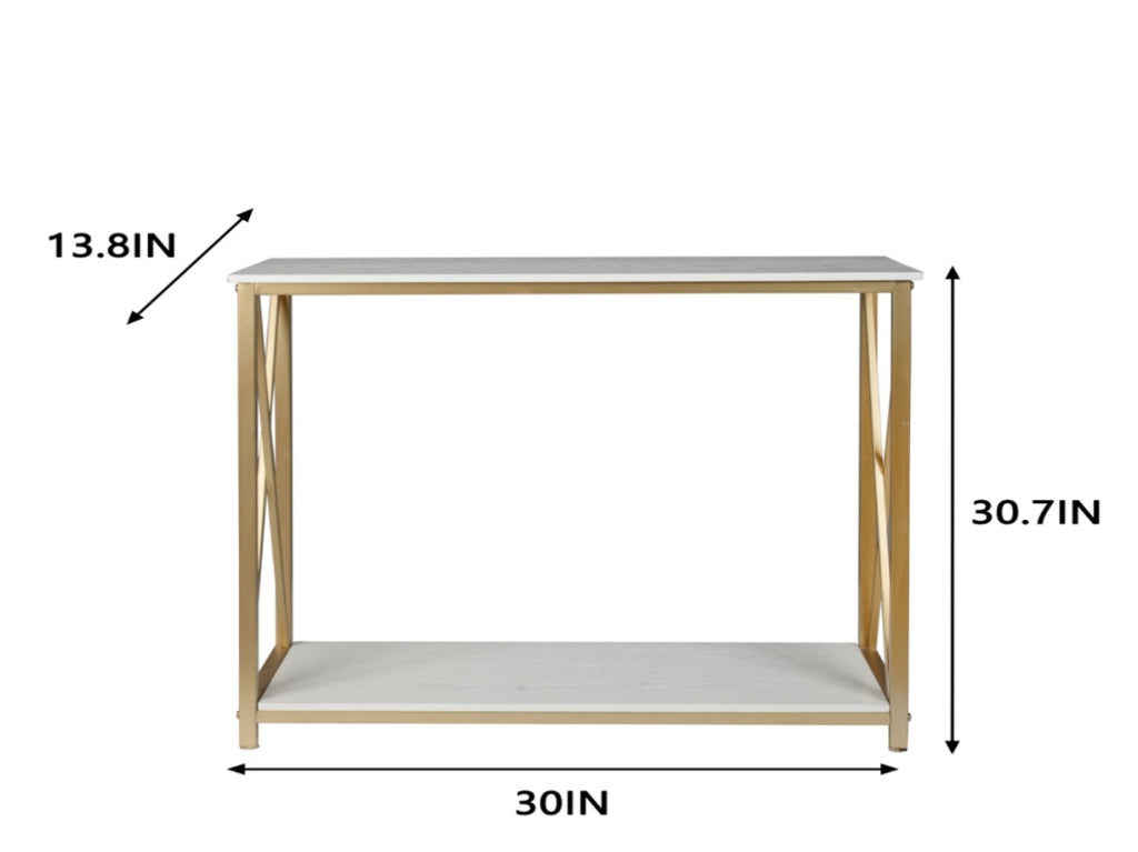 2-Tier Console Table, Gold Sofa Entry Table with White Top and Gold Metal Frame for Home 58656376