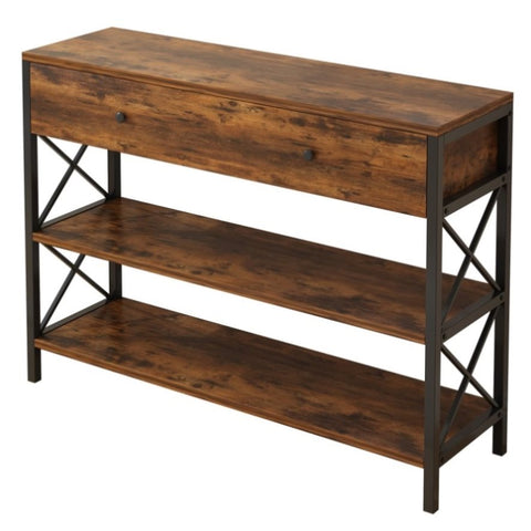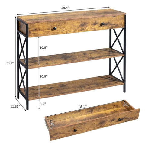 3 Tier Console Table Entryway with Drawer and 2 Open Storage, Industrial Sofa Table with Storage 15815889