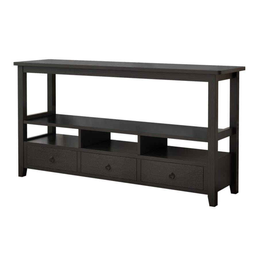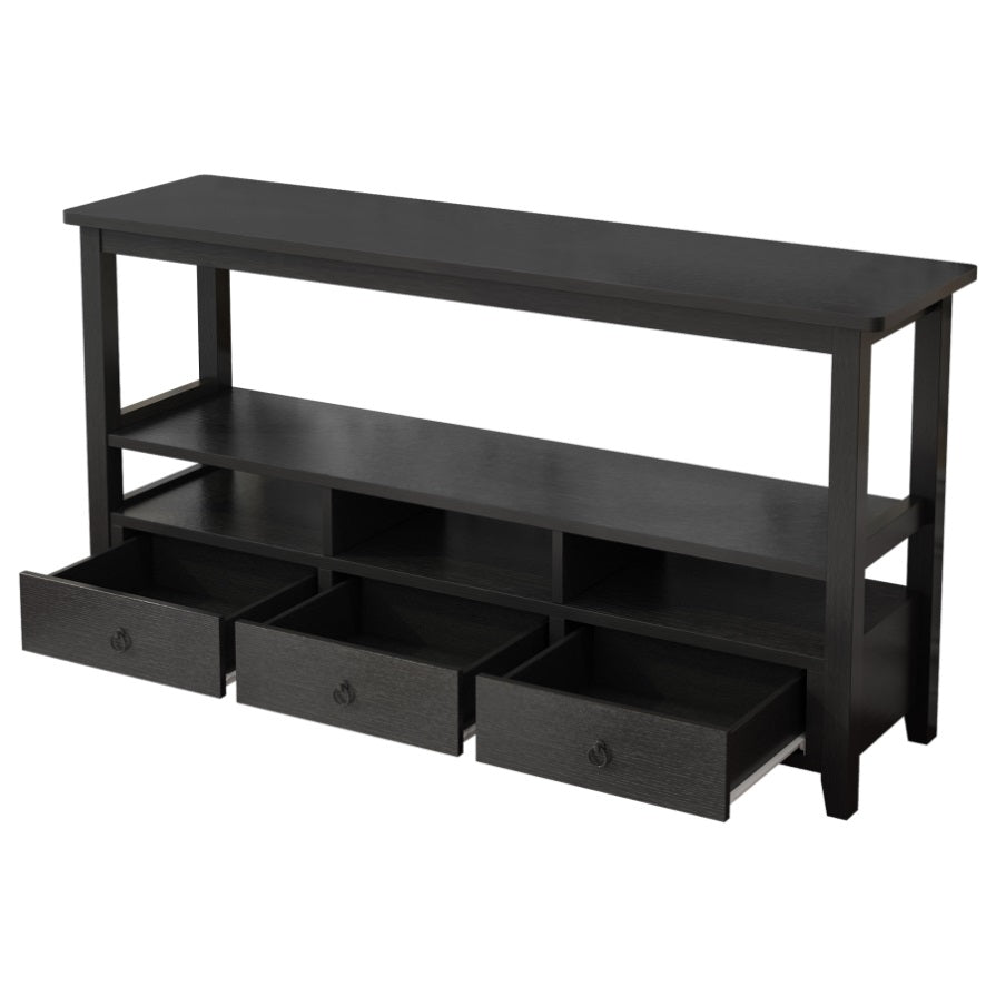 3 Tier Vintage Solid Console Table with 3 Drawers and Shelves, Industrial Console Table Coffee Table 10966810
