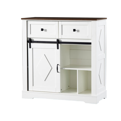 39" Sliding Barn Door Buffet Sideboard Cabinet Coffee Bar with and 2 Drawers, Coffee W2948P245259