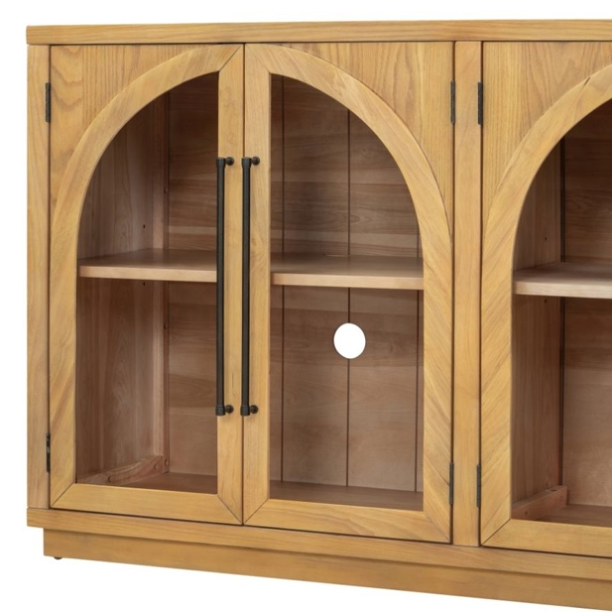 Unique Design: This arched cabinet adopts a traditional retro style, adding uniqueness and personality to your furniture. The arched design of the four cabinet doors, paired with superior glass material, makes this sideboard buffet cabinet with storage stand out. Equipped with four durable metal linear handles and clear lines on the backboard when the cabinet door opens, it’s a practical and stylish choice.