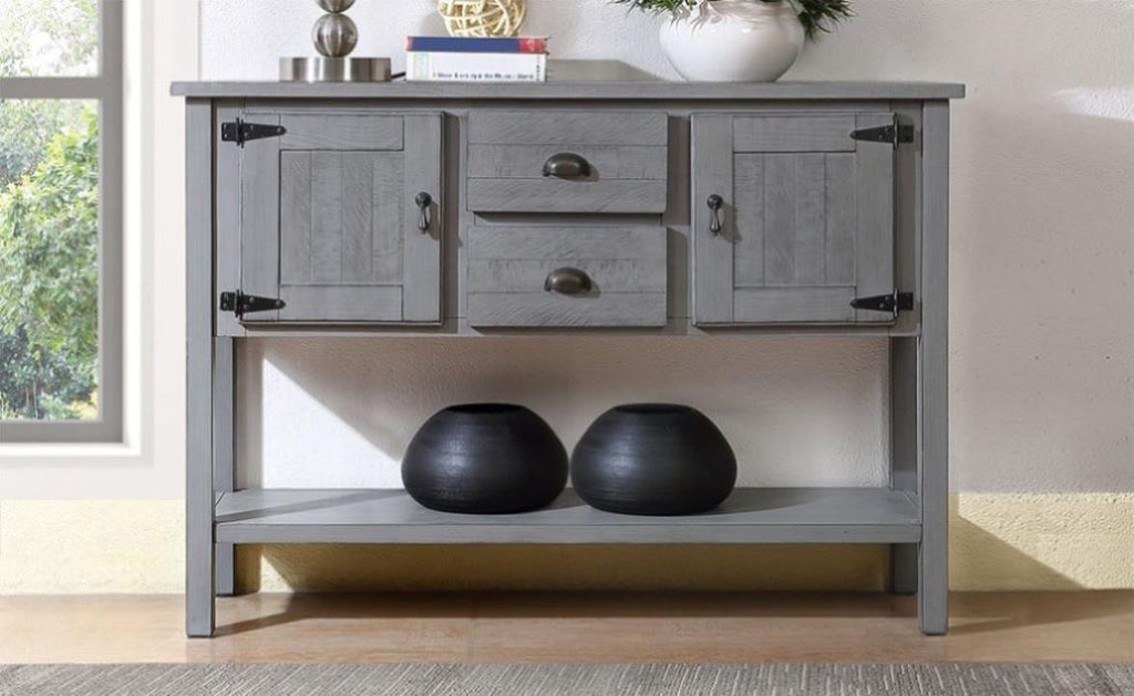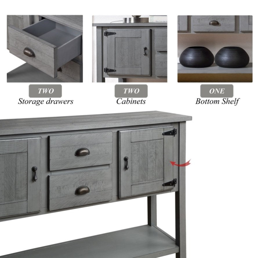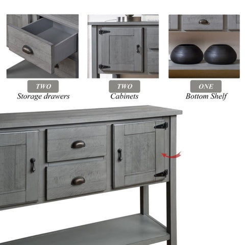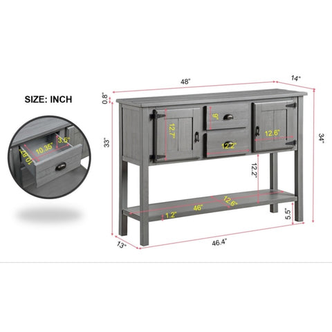 48'' Solid Wood Sideboard Console Table with 2 Drawers and Cabinets and Bottom Shelf, Retro Style W120270245