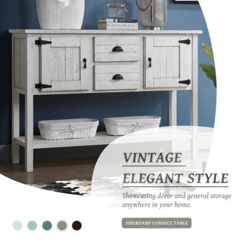 48'' Solid Wood Sideboard Console Table with 2 Drawers and Cabinets and Bottom Shelf, Retro Style W120270249