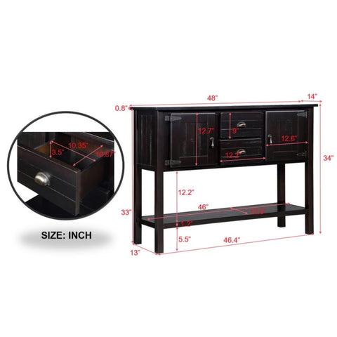 48'' Solid Wood Sideboard Console Table with 2 Drawers and Cabinets and Bottom Shelf, Retro Style W1202P263636