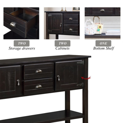 『Ample Storage Space』: This wood console table is designed with 2 drawers and 2 cabinets, which provide you with ample storage space to classify and store different belongings. Also, the top board and bottom shelf can display various items, such as fruit, tableware, plants, glassware and so on.