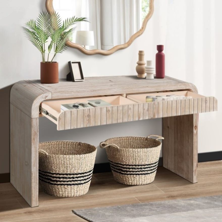 The American Farm Vintage Side Table is ideal for the hallway, living room or next to the sofa with its exceptional design style and practical features. Its vertical stripes of three-dimensional effect drawers and hidden handles add to its uniqueness and practicality, while the easy installation provides you with a convenient and comfortable buying and using experience. This side table will not only add a vintage and cosy vibe to your space, but will also meet your storage and decorative needs!