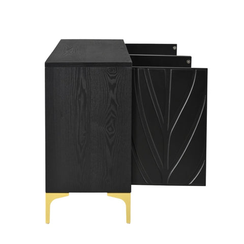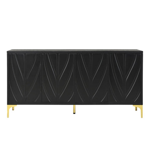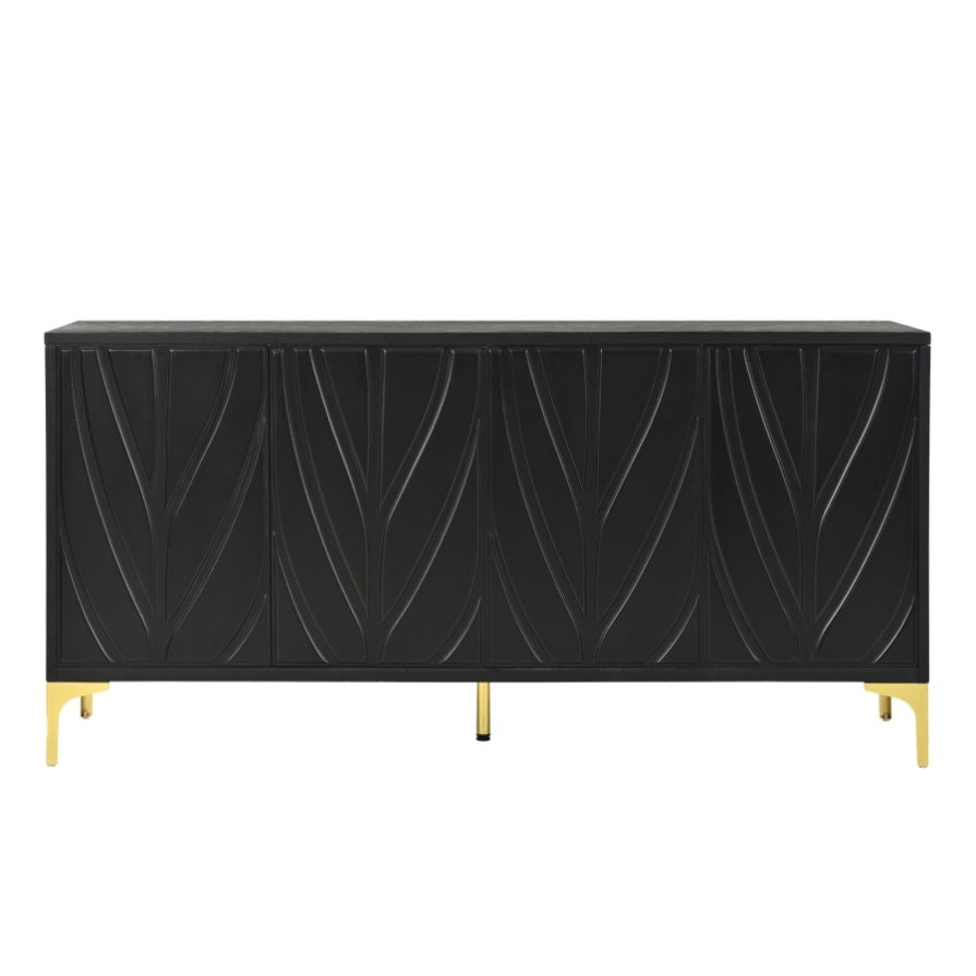 Elegant Black Design: This 4-door Sideboard storage cabinet comes in a sleek black color, which adds a touch of sophistication to any room. Measuring 59.84 inches in length, 15.91 inches in width, and 29.72 inches in height, it's the perfect size to fit in various spaces without taking up too much room. The black finish not only looks stylish but also easily matches different interior styles.