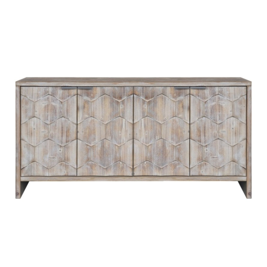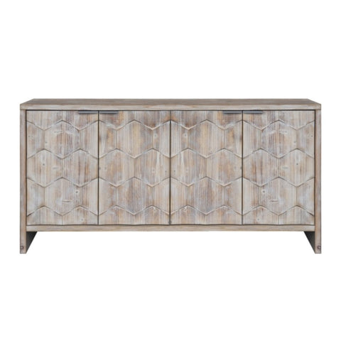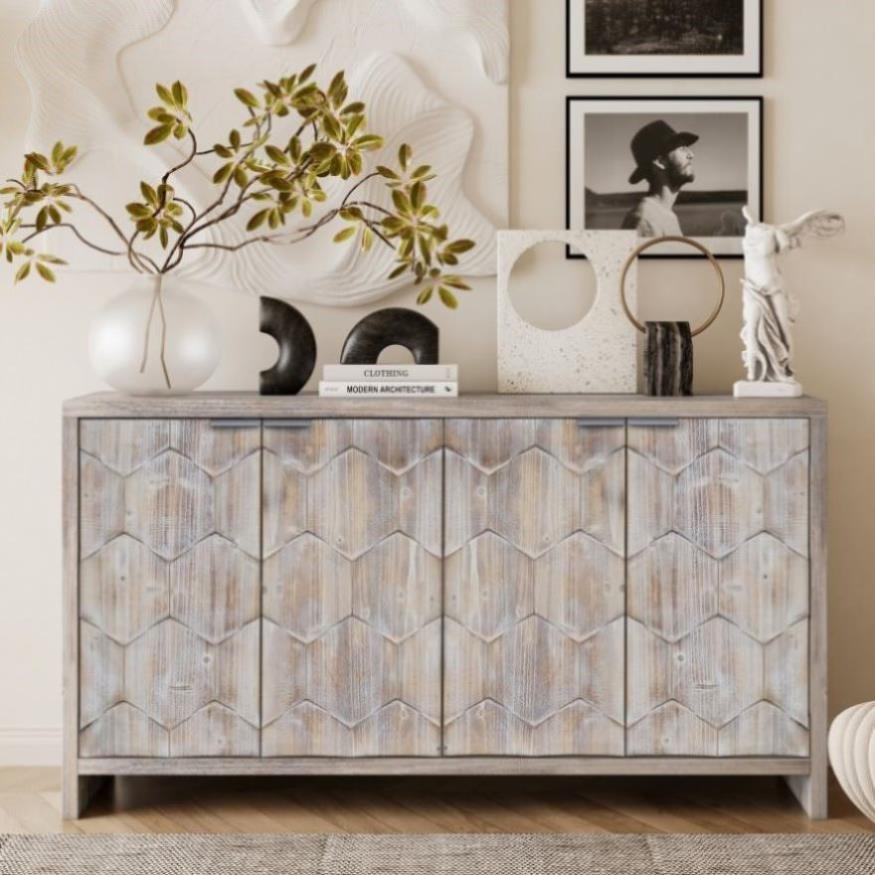 This cabinet is designed with minimalist style along with a stable structure to make a unique statement, which provides powerful practicality rather than a household adornment. With plenty of space to offer, utilize the casual four-door cabinet featuring two-tier storage to minimize clutter while keeping select essentials within easy reach, or display your favorite décor on the spacious upper counter. With decorative fluted doors add beauty and enhances the artistic sense of the entire home.