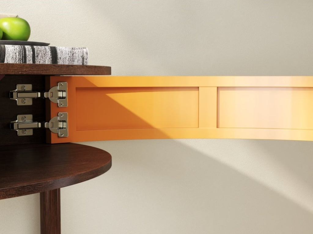 Artisan-Crafted Wave-Pattern Demi-Lune Console Table with Brown Woodgrain,Unique Half Moon Design 00611701