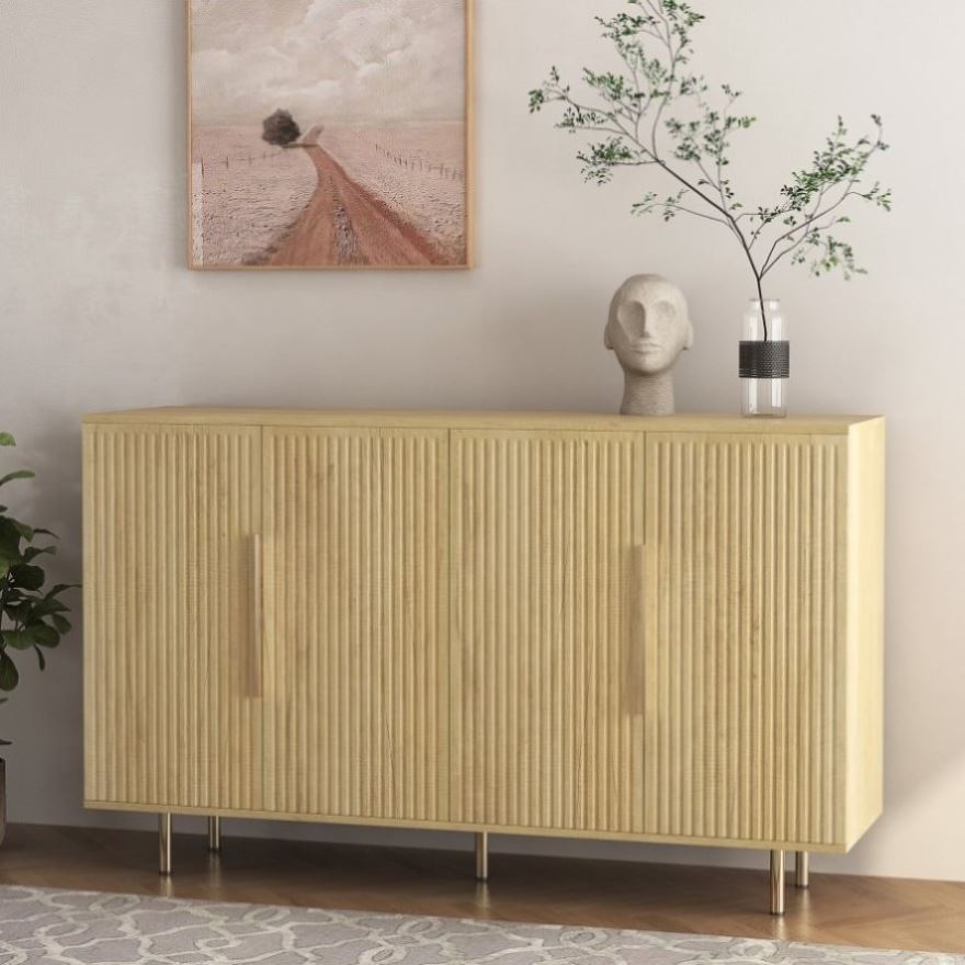 Large Storage Space: The buffet table is equipped with a wooden corrugated board decorative door, with a spacious top and four large spaces inside, which is perfect for placing your collections or decorations or necessities, keeping your room neat and organized