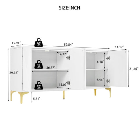 Buffet Cabinet with, Wood Sideboard Cabinet with Carved Door Panels,4 Doors modern aesthetic W2696P279968