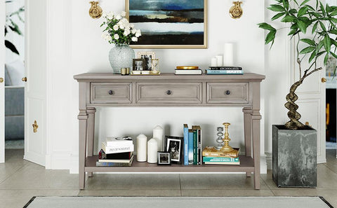 Classic Retro Style Console Table with Three Top Drawers and Open Style Bottom Shelf, Easy Assembly 35752405