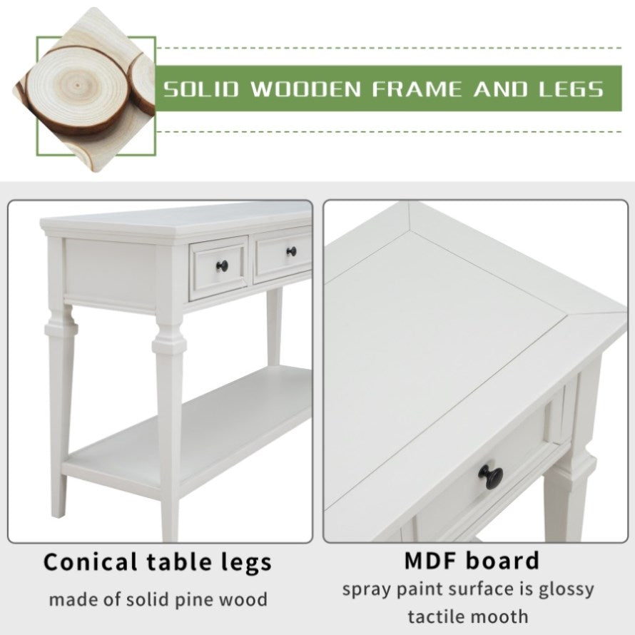 Classic Retro Style Console Table with Three Top Drawers and Open Style Bottom Shelf, Easy Assembly 87021616