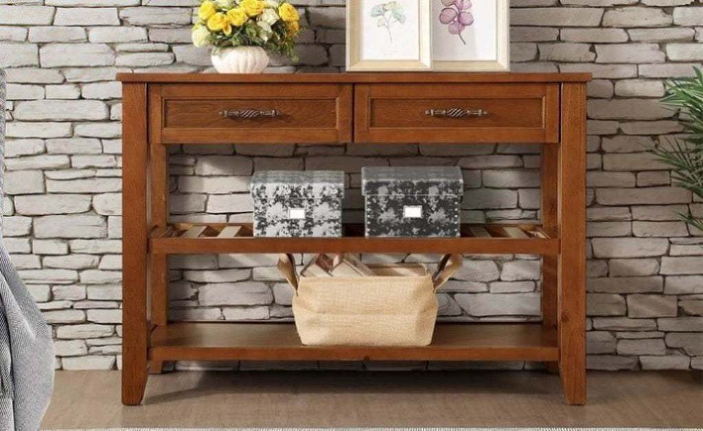 Console Sofa Table with 2 Storage Drawers and 2 Tiers Shelves, Mid-Century Style 42'' Solid Wood W120284579