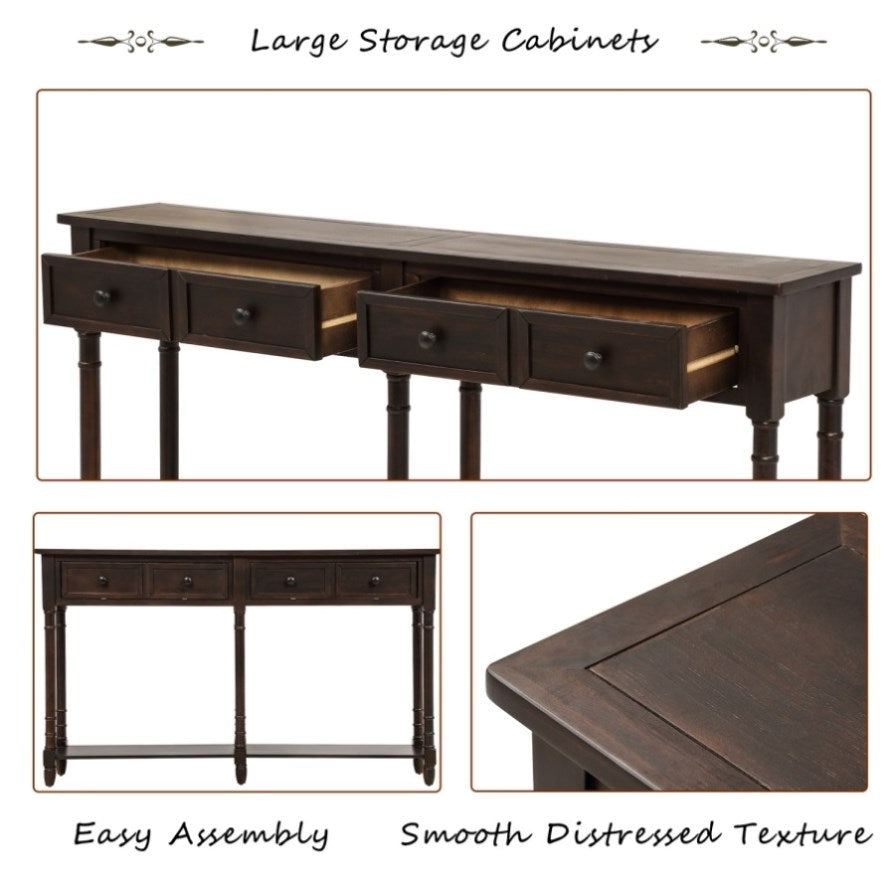 TREXM Console Table Sofa Table Easy Assembly with Two Storage Drawers and Bottom Shelf for Living Room, Entryway(Espresso)