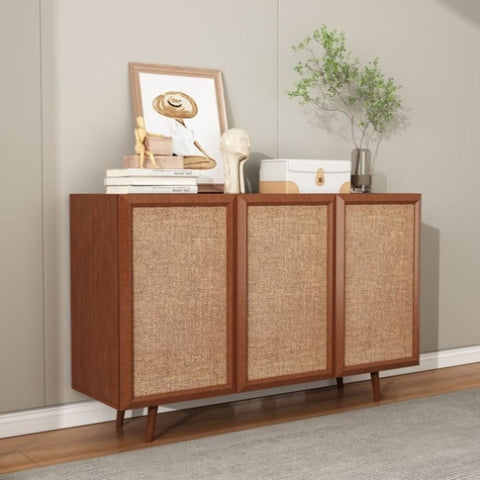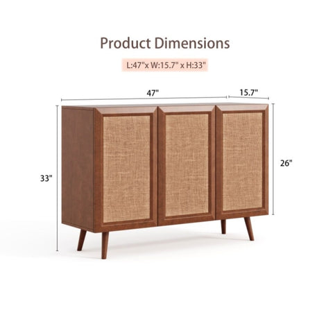 AMPLE STORAGE CAPACITY: With its ample storage space and roomy desktop, this sideboard buffet cabinet facilitates the organization of your belongings. Whether it be domestic appliances, books, or toys, this 3 door rattan storage cabinet provides a convenient storage space for all your necessities