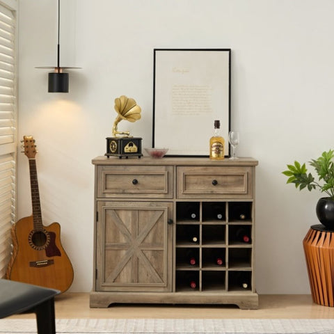 Rustic Buffet Cabinet with Wine Rack:There are endless possibilities with this sideboard cabinet to maximize your space. It has 12 wine racks allow you to display your liquors. Ample space is the perfect spot to show off your wine and glasses, coffee maker, dishes, candlesticks, etc.
